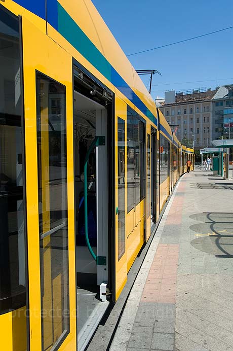 › Artikuliert laengste Strassenbahn der Welt in Budapest