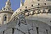 Statue d'un soldat médiéval devant le Bastion des Pêcheurs Budapest
